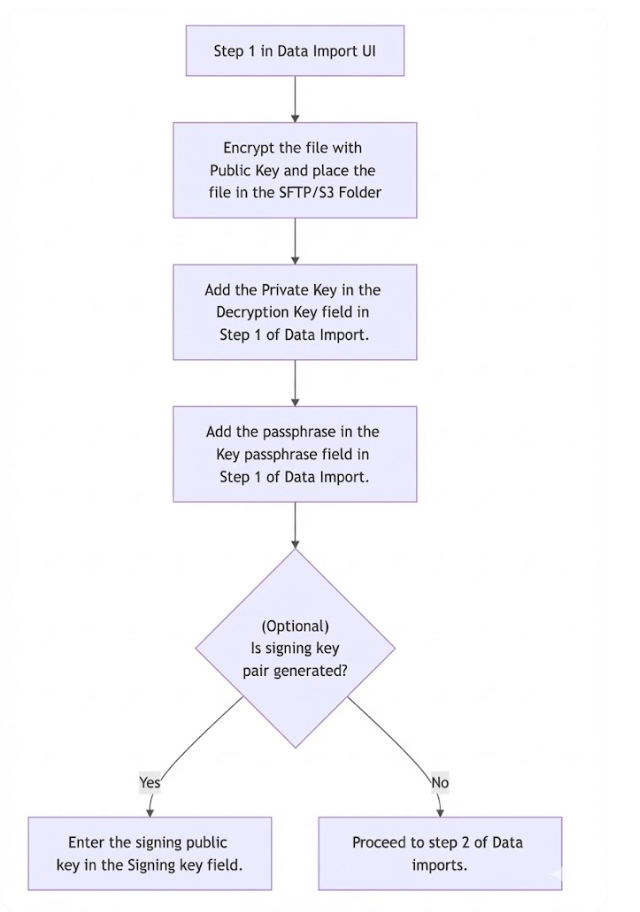 Enter the private key in the Decryption Key section on the MoEngage UI, and then enter the passphrase in the Key Passphrase section. For more information, refer to the Adding your S3 Credentials (S3 Imports) and Adding your S3 Credentials (SFTP Imports) sections.