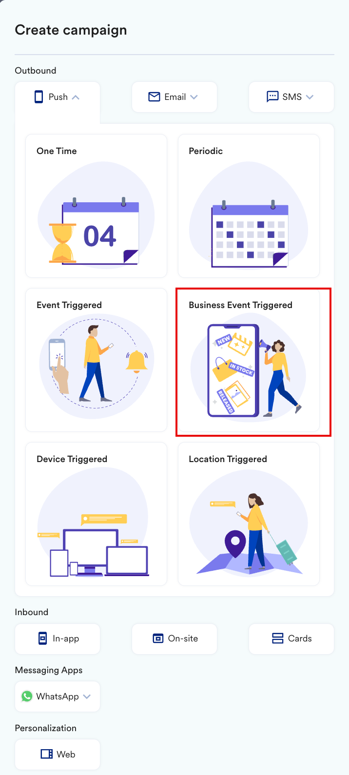 1. In the MoEngage dashboard, go to any Business Event Triggered campaign.