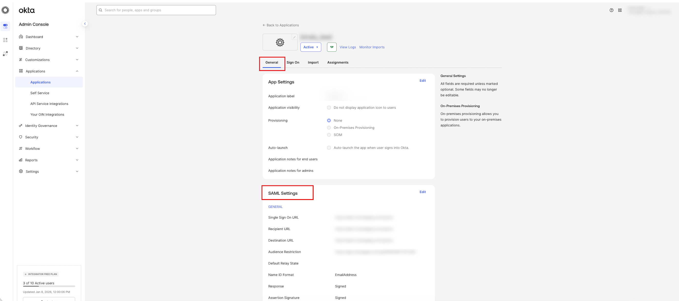 - Return to the Okta Admin Console and click the Provisioning tab.