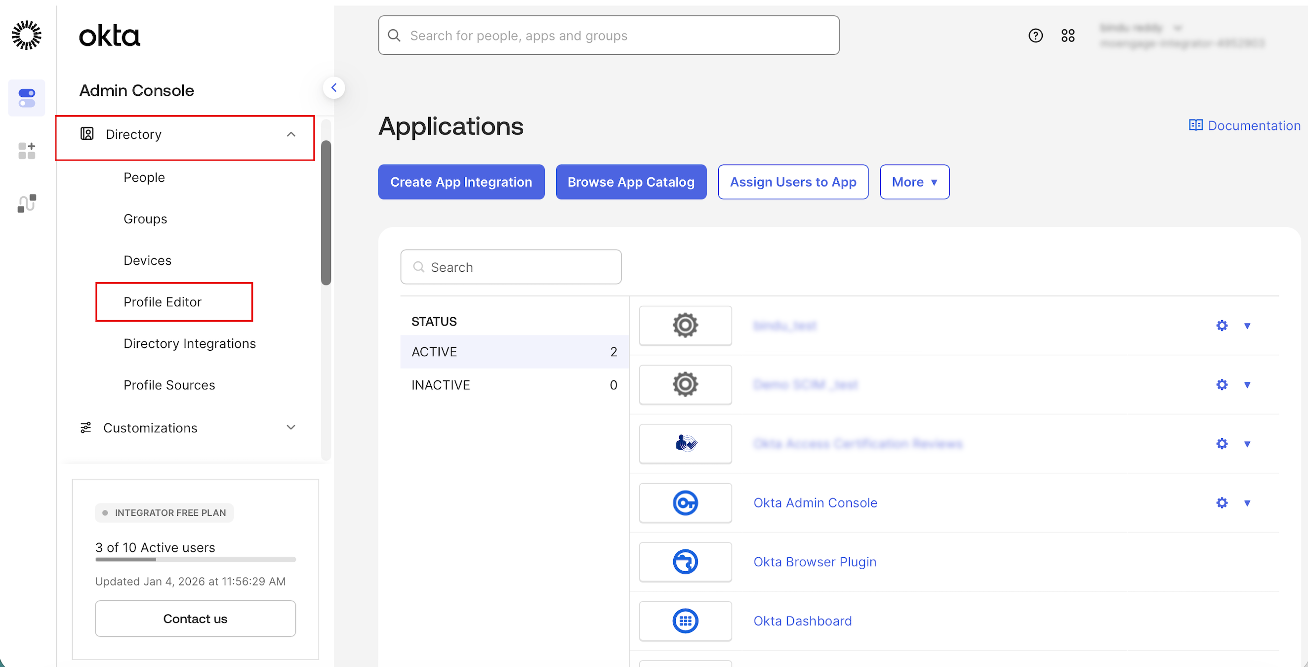 - On the left navigation menu, click Directory > Profile Editor.