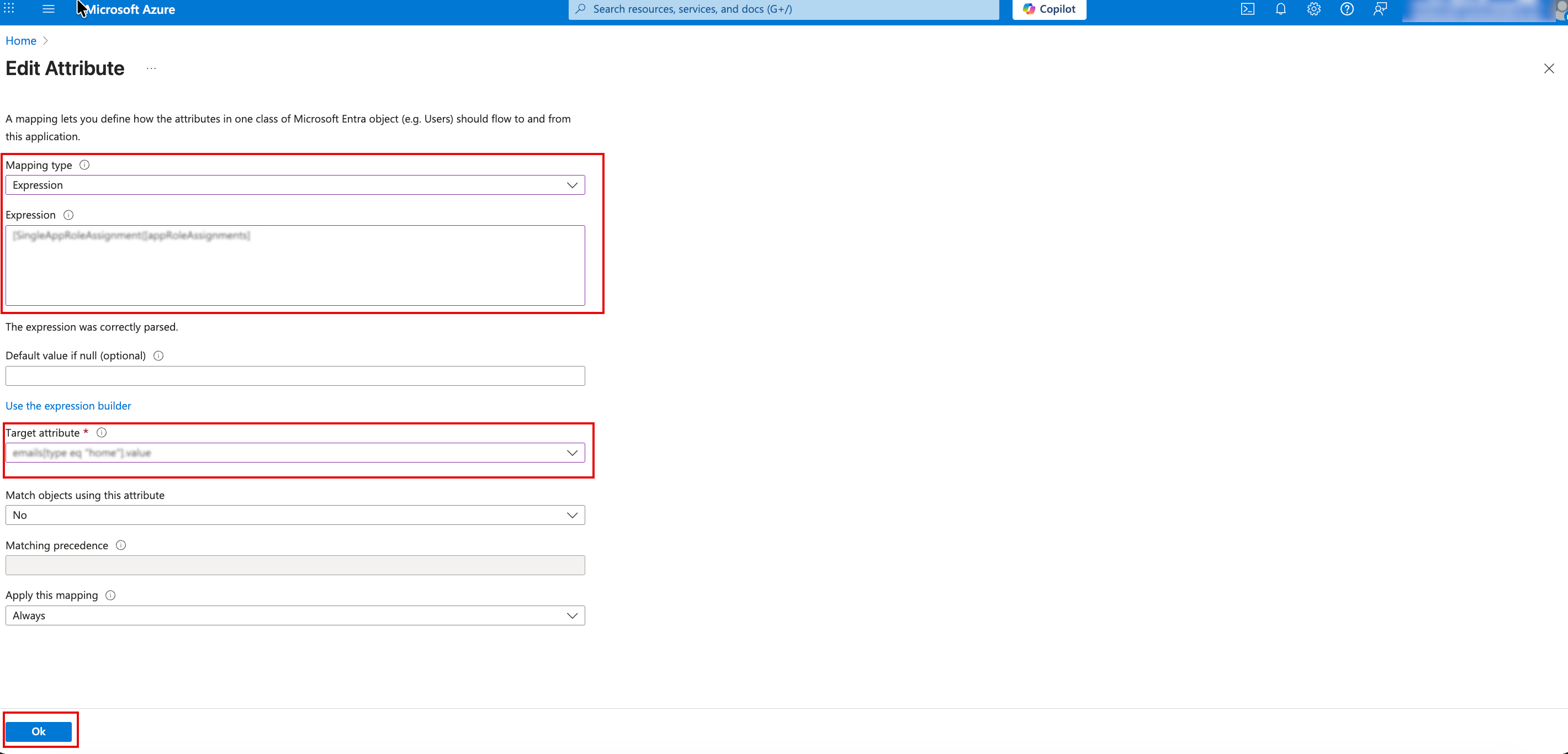 - In the Expression box, type the expression SingleAppRoleAssignment([appRoleAssignments