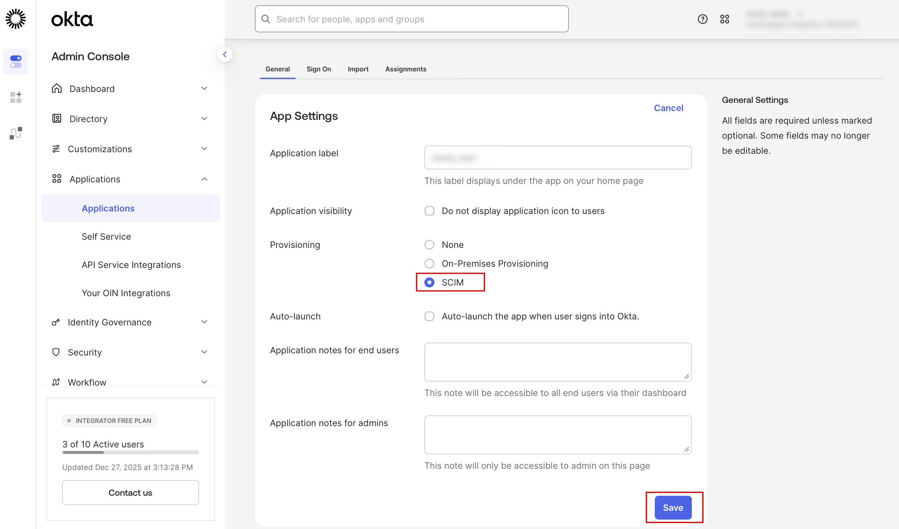 Step 2: Enable SCIM in Okta App Settings