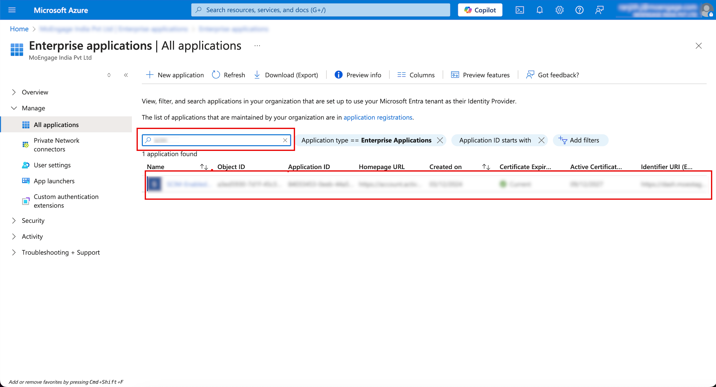 - Navigate to Home > Microsoft Entra ID > Manage > Enterprise applications and select your application.