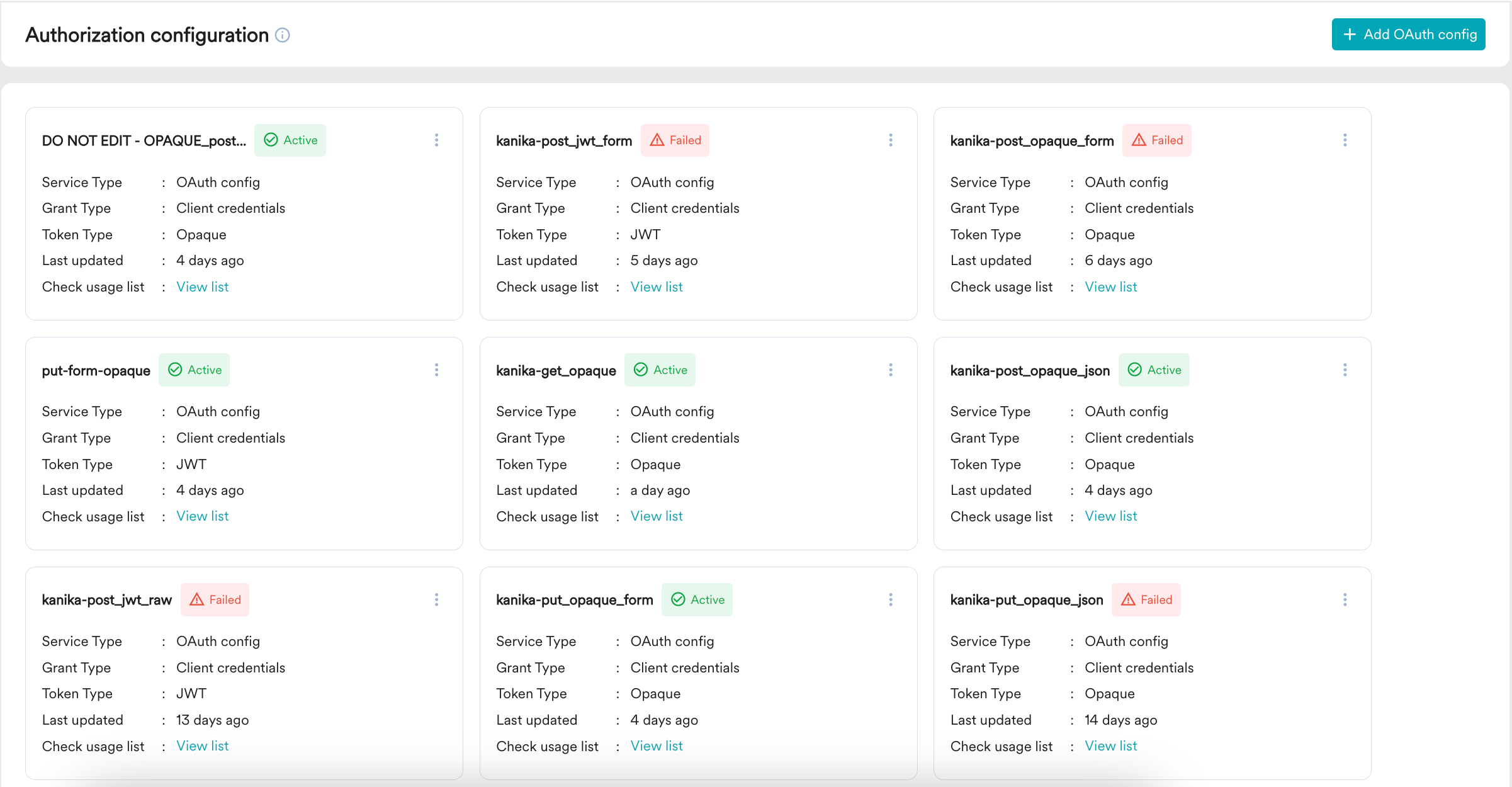 - If an active OAuth configuration expires, its status will change to "Failed." When you edit a campaign or connector that uses this expired configuration, an error message will be displayed, and you will need to select a new, active OAuth configuration.