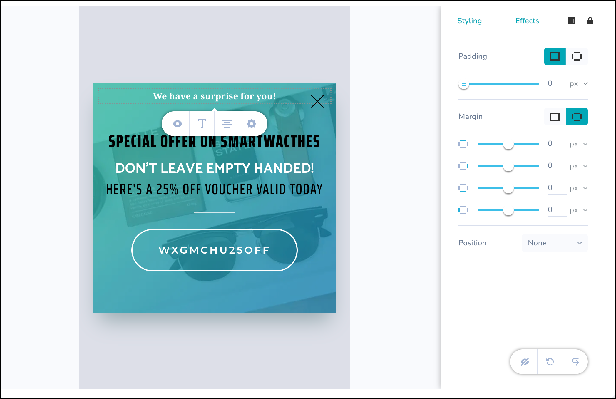 Styling: Use the Padding and Margin options to modify the element's position on the template.