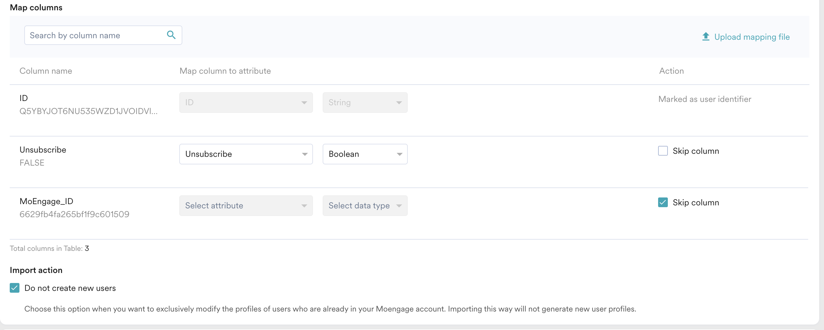 - Select the Do not create new users option if you want to exclusively modify the profiles of users who are already in your MoEngage account.