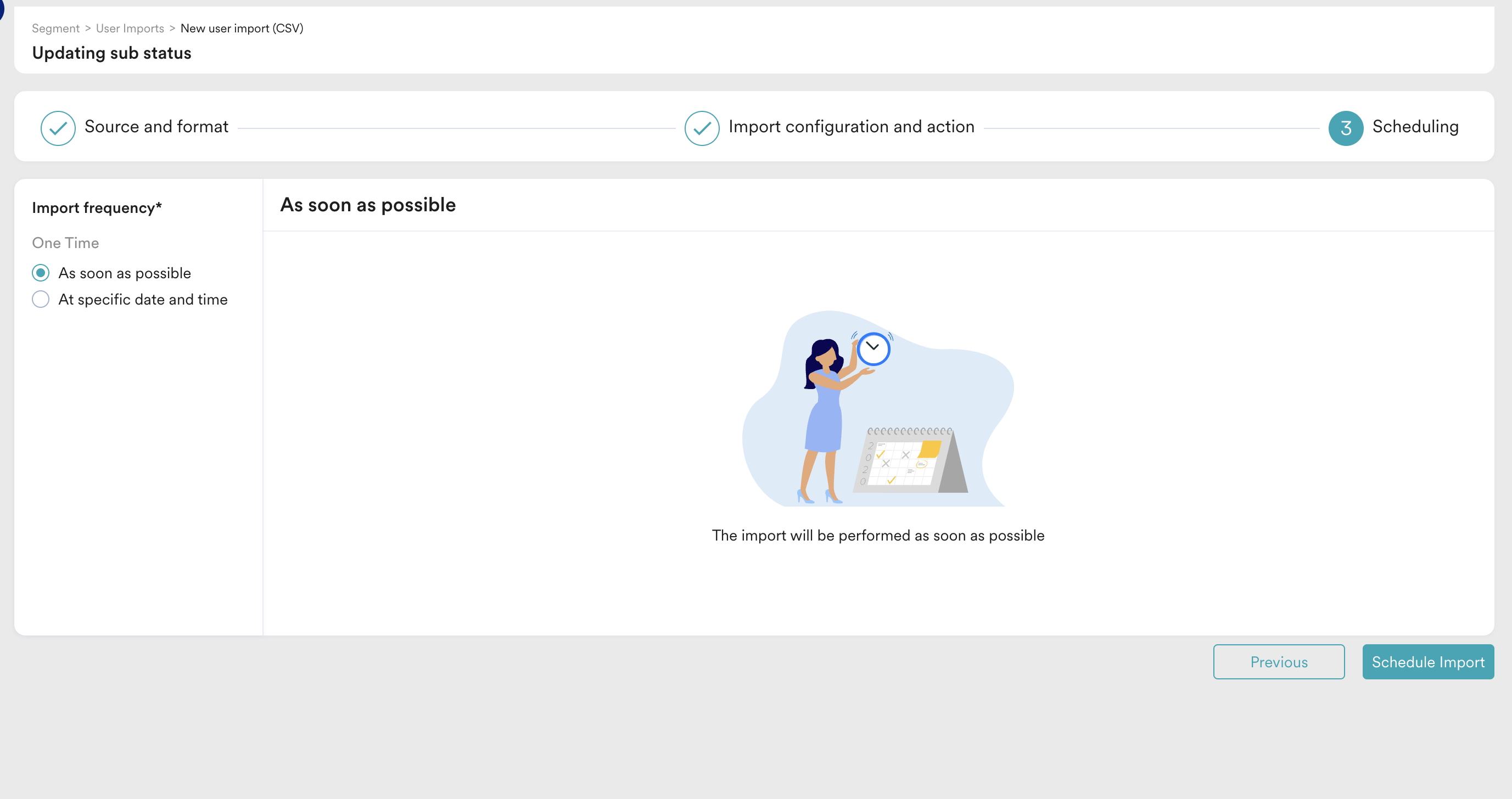 - In the following screen, select the import frequency and then click Schedule import.