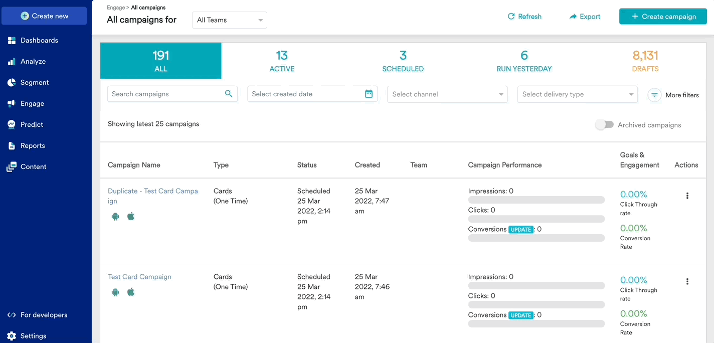 You have complete flexibility in managing your dashboard. MoEngage Analytics provides you with various features to enhance your dashboard experience.