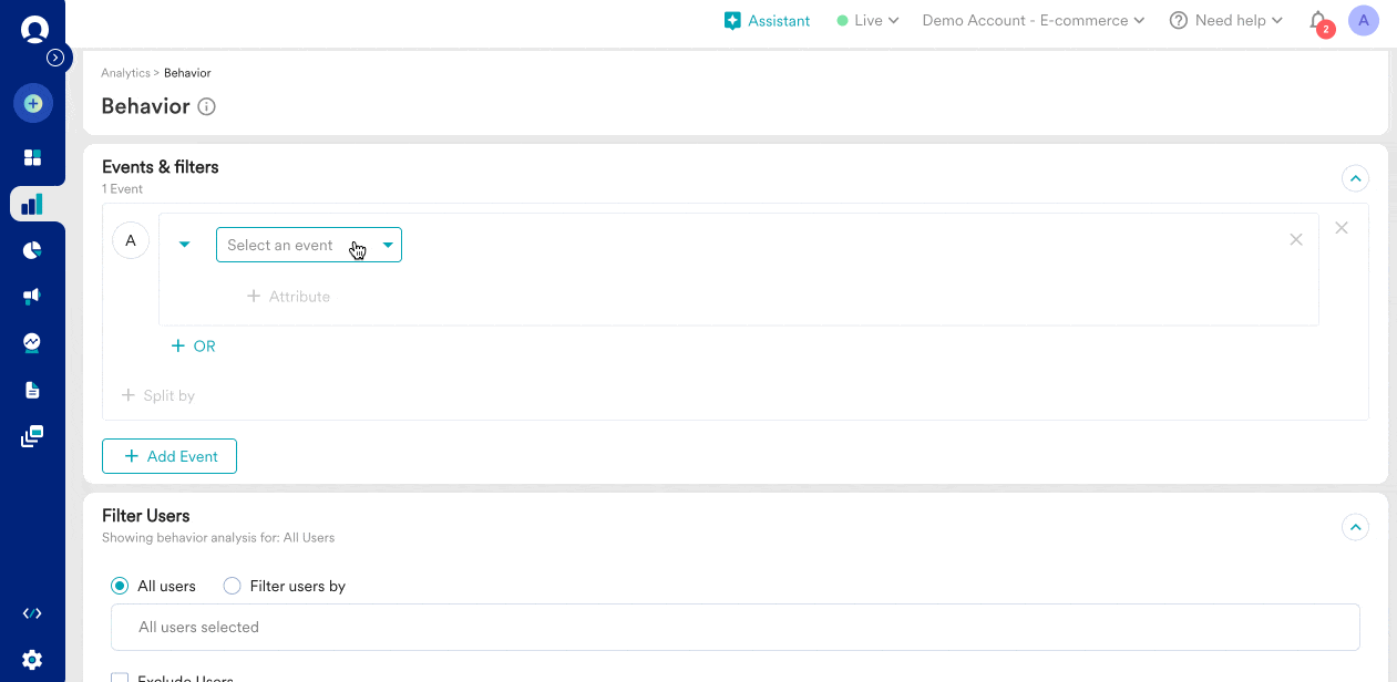 On the MoEngage dashboard, user behavior analysis can be analyzed on different pages - Analyze, Segmentation, and Campaign stats section.