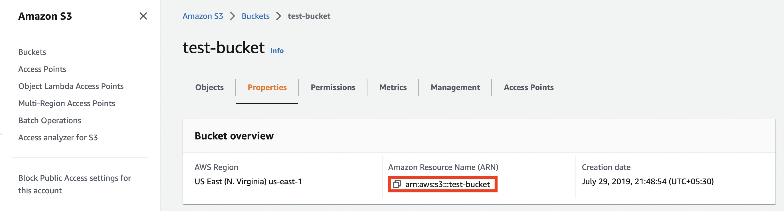 How to find this: n your AWS Console, go to Amazon S3. Click on your bucket from the list, and the name of the bucket is mentioned at the top. You can also find this in your bucket Properties tab. Look at your S3 ARN, the part after Example: |