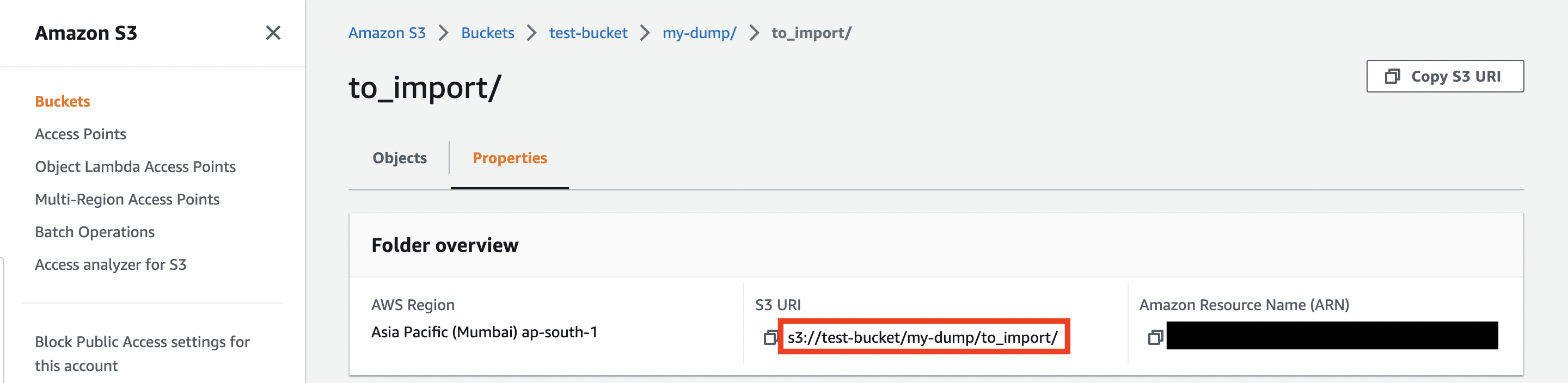 How to find this: From the list of objects in your S3 bucket, open the folder you to import from. In the Properties tab, look at the folder's S3 URI. Your folder path is the part after In the above example, your folder path is: Example: