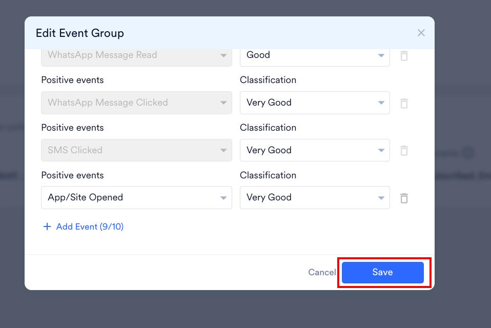 Add events: Click + Add Event to include additional signals. You can add up to 10 events.