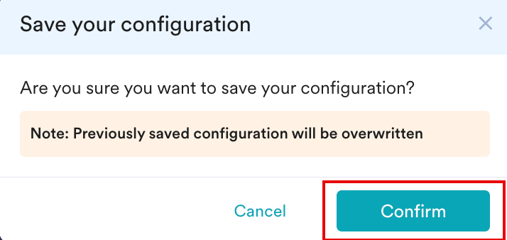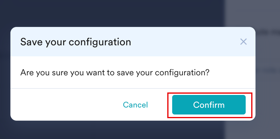 The Save your configuration dialog box appears, prompting you to confirm your configuration. - Click Confirm to apply changes.