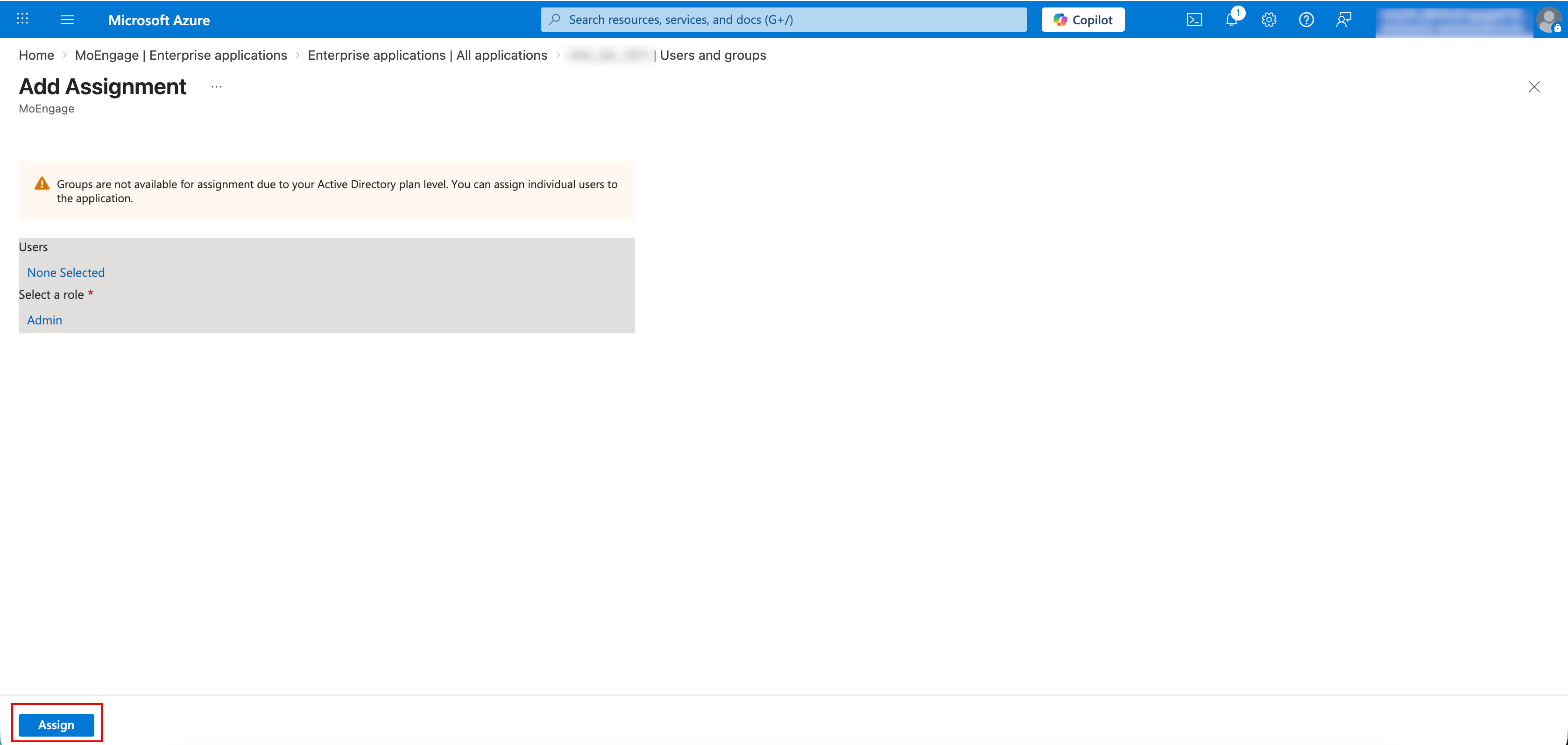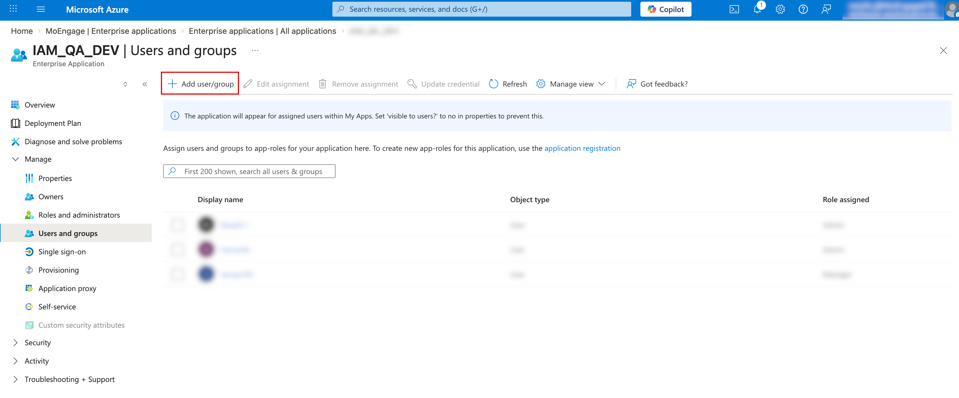 - Go back to the Enterprise applications | All applications page, and click Users and groups.