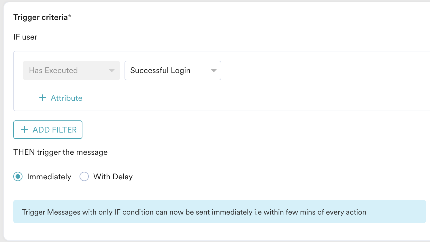 - トリガー条件を設定します。遅延を追加することも選択できます。