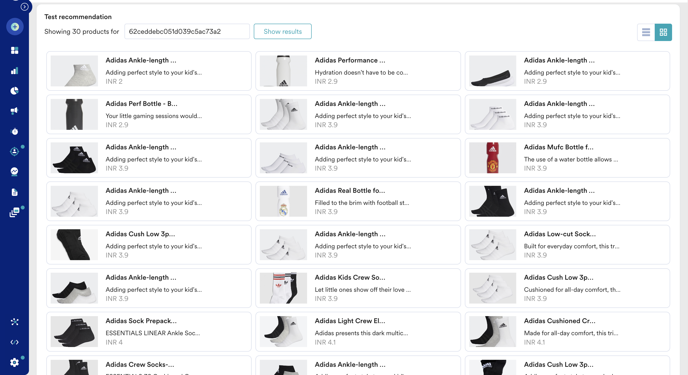 推奨設定の一番下に、 テスト推奨 オプションがあります。お客様のユニークな MoEngage ID を入力し、 結果を表示 をクリックして、この特定の時間にユーザーの結果を確認してください。