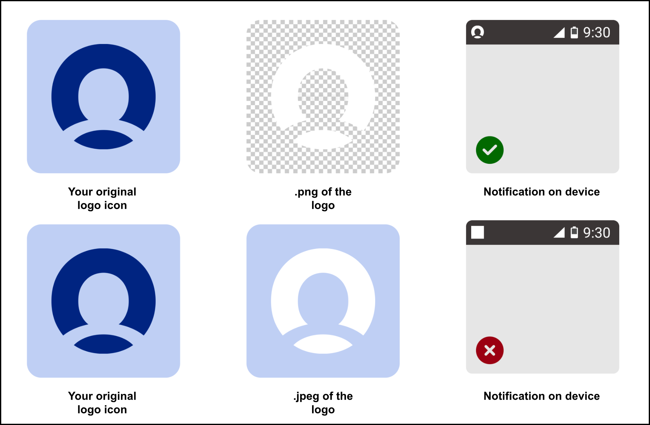 AndroidデバイスでWebプッシュを受信する場合、バッジアイコンはプッシュ通知の左上セクションに表示されるアプリアイコンです。バッジアイコンをアップロードするための2つのオプションがあります: