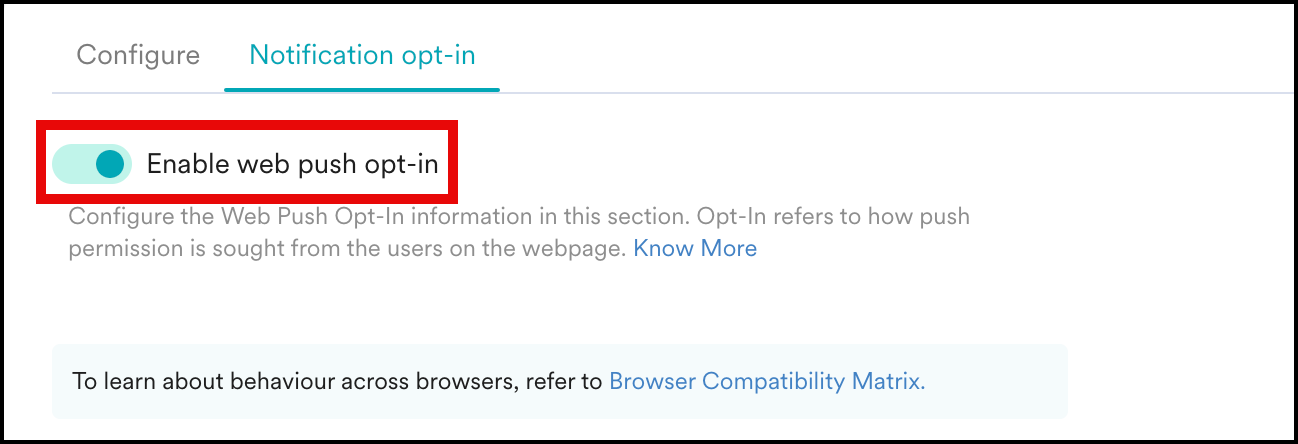 - It consists of two sub-sections, Configure and Notification Opt-in .