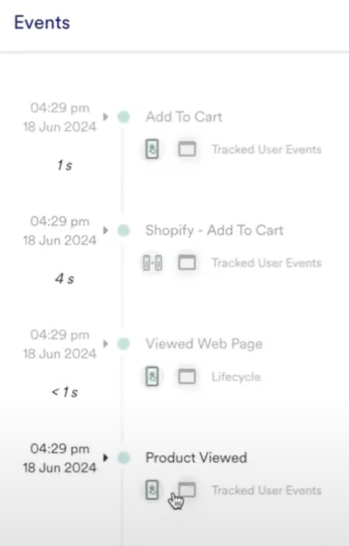 MoEngageダッシュボードの セグメント > ユーザープロフィール > アクティビティ情報 で、すべてのユーザーイベントを見つけることができます。