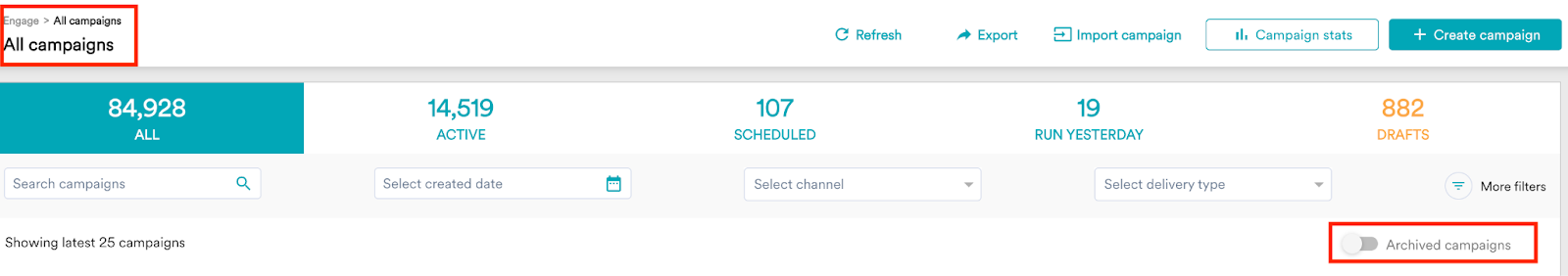 - アーカイブ済みキャンペーンは、アーカイブ済みキャンペーンリストにあります。