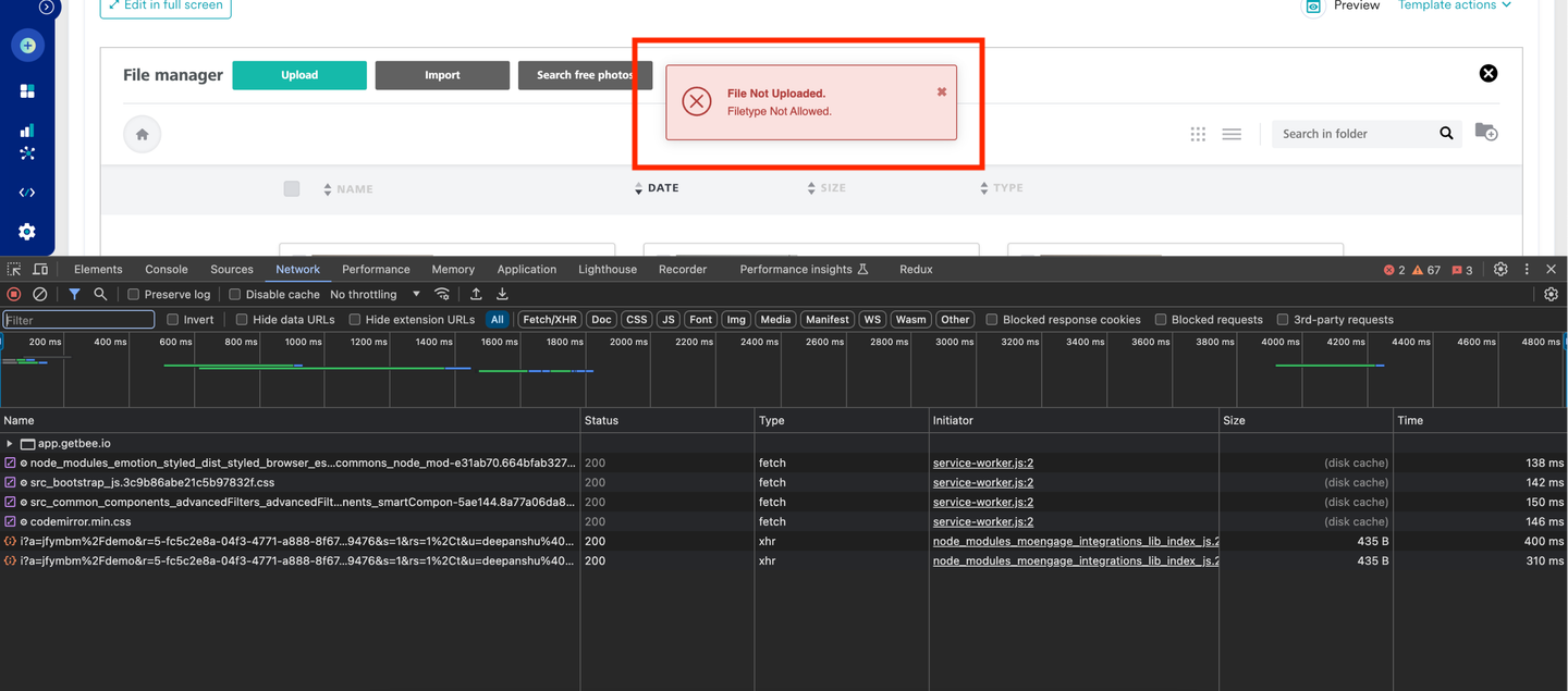 Warning MoEngageは.mp4ファイルをサポートしていません。 |