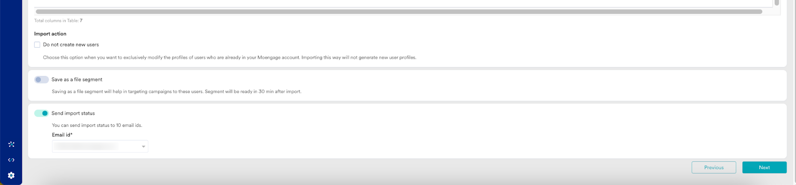 他の場所(MoEngageベースのメール以外)でユーザーが退会したために、ユーザーの退会を希望する場合は、MoEngageの ユーザーインポート を使用して更新することができます。この目的を達成するために、次の手順を実行してください: