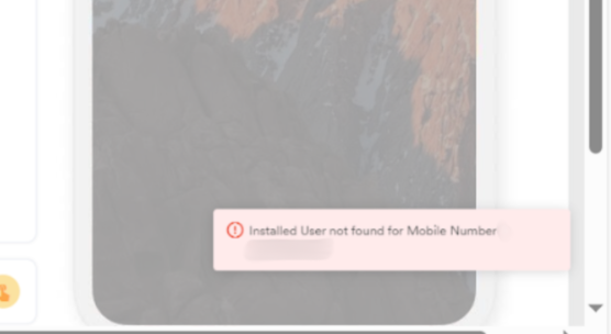 インストールされたユーザーがモバイル番号 = 0000000000 に対して見つかりませんでした