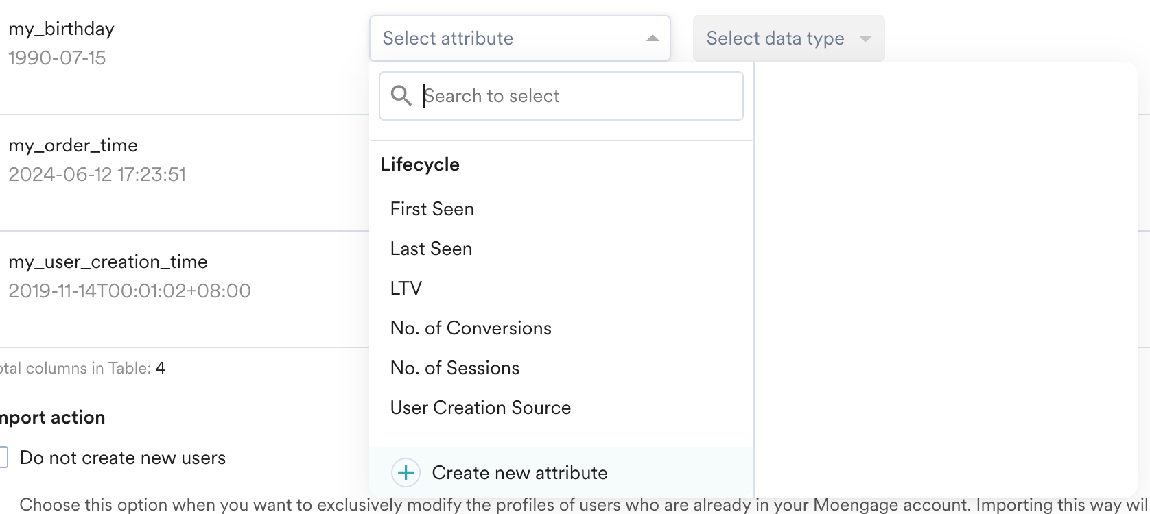 MoEngageにデータをインポートする準備ができました。新しく作成された属性をそれぞれの列にマッピングしてください。