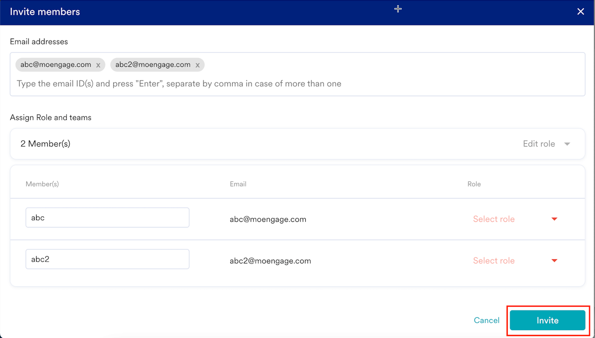 この機能を使用すると、MoEngageのワークスペースにメンバーを招待し、各メンバーのワークスペースへのアクセスレベルを定義できます。