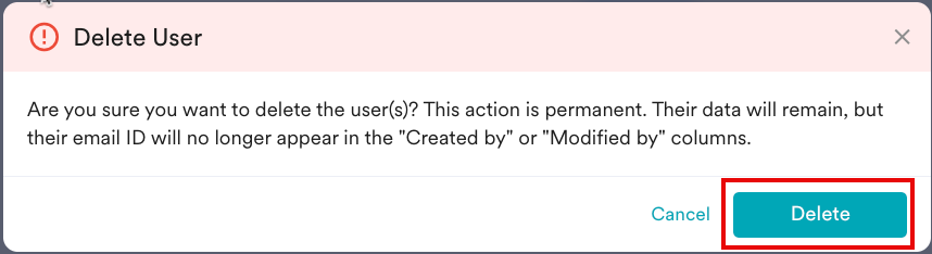 「 ユーザーを削除 」ポップアップウィンドウが表示され、メンバーを削除する確認を求められます。