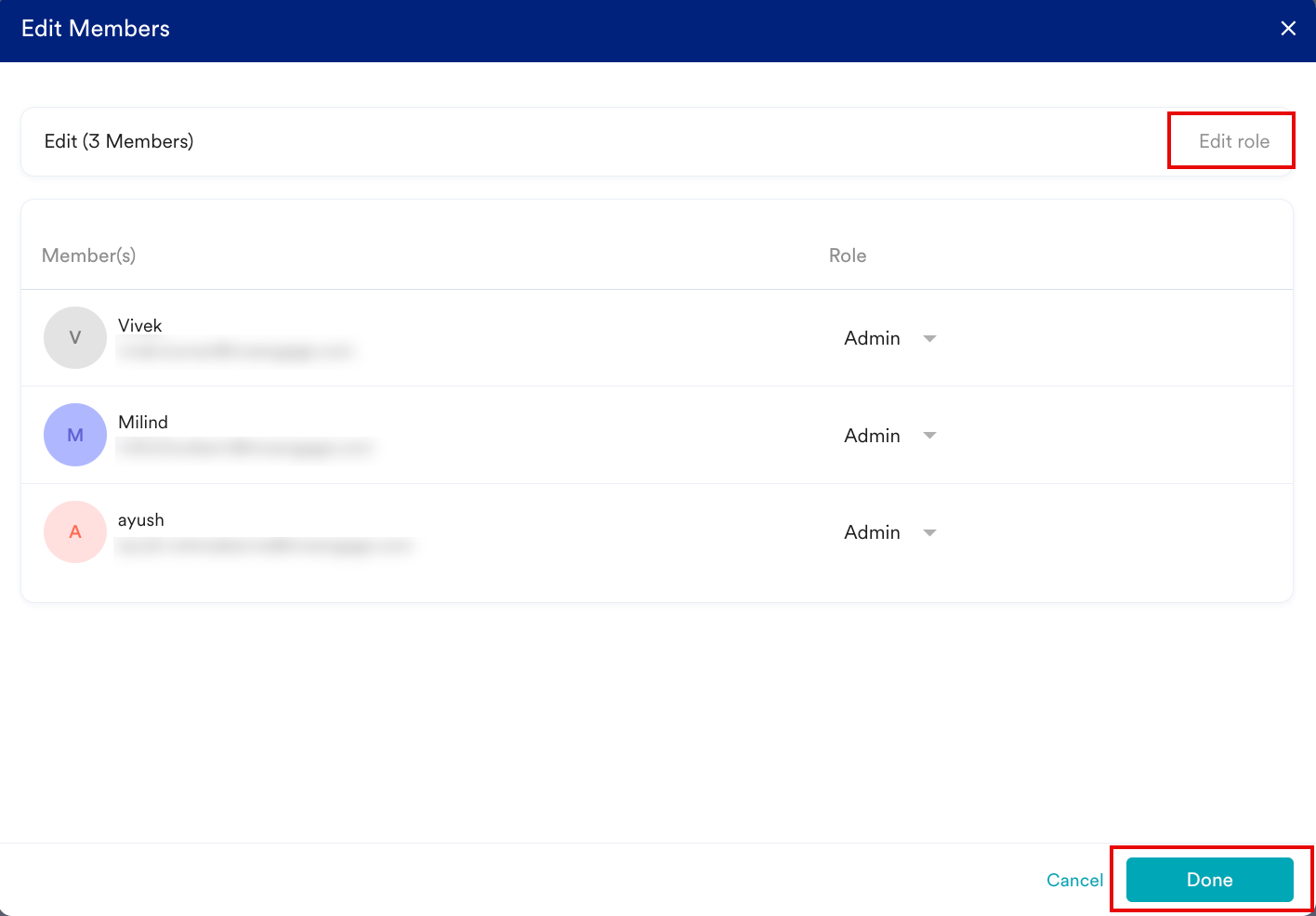 メンバー編集のポップアップウィンドウが表示されます。 - クリックして 役割を編集 し、メンバーの役割を変更します。すべてのメンバーに同じ役割が割り当てられます。