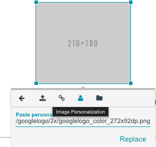 このパーソナライズされた画像を挿入または置換した後、画像を選択して リサイズ オプションでサイズを指定するか、境界を拡張または縮小することで画像サイズを変更できます。画像サイズが実際の画像とフォールバック画像に一致していることを確認してください。それ以外の場合、解像度が原因で画像が歪む可能性があります。