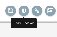 キャンペーン作成ページのメッセージングタブで、シールドアイコンをクリックするとこのスパムチェッカーにアクセスできます。これはスパムフィルターテストを開始します。完了するまでに約30秒かかります。
