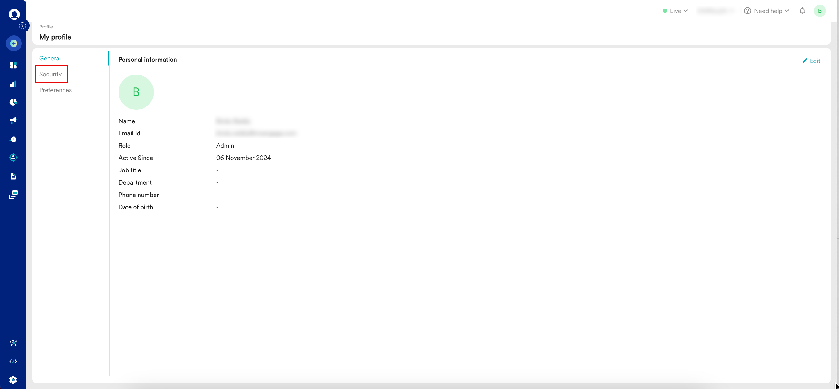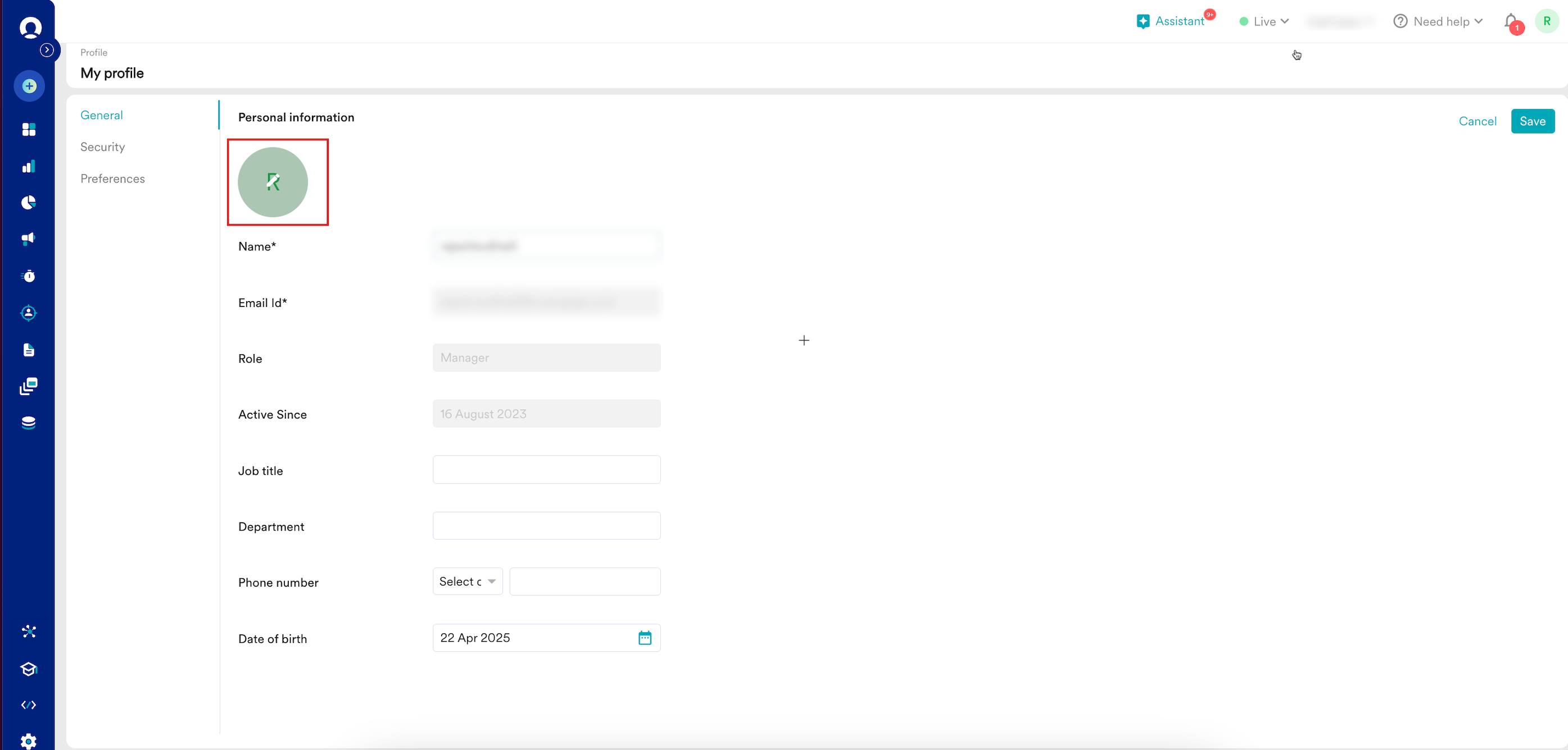 部署 あなたの部署名を入力してください。 電話番号 国コードを選択し、電話番号を入力してください。 生年月日 日付ピッカーを使用して生年月日を選択してください。 - クリックして 保存 します。あなたの個人情報が更新されました。