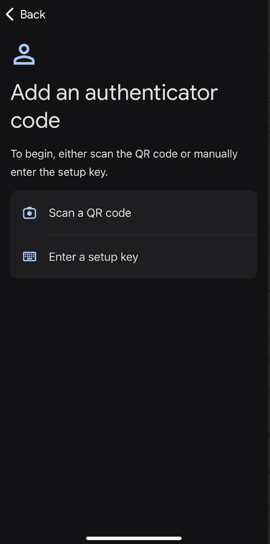 - デバイス認証の設定 ページにあるQRコードをスキャンします。認証がデバイスに追加されます。認証アプリが6桁のコードを生成します。