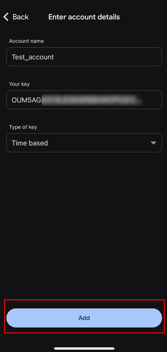 ボックスの名前で、認証がデバイスに追加されます。認証アプリが6桁のコードを生成します。