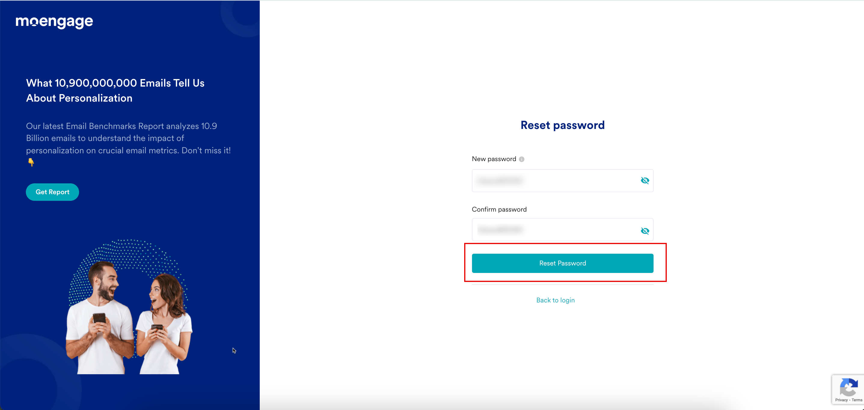 パスワードが正常にリセットされ、MoEngageがログインページにリダイレクトします。新しいパスワードを使用して、 MoEngageダッシュボードにログイン できます。