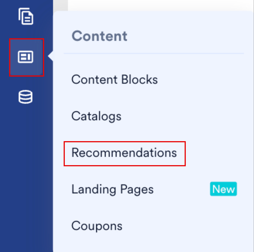 MoEngageのサイドバーメニューで、コンテンツメニュー項目
