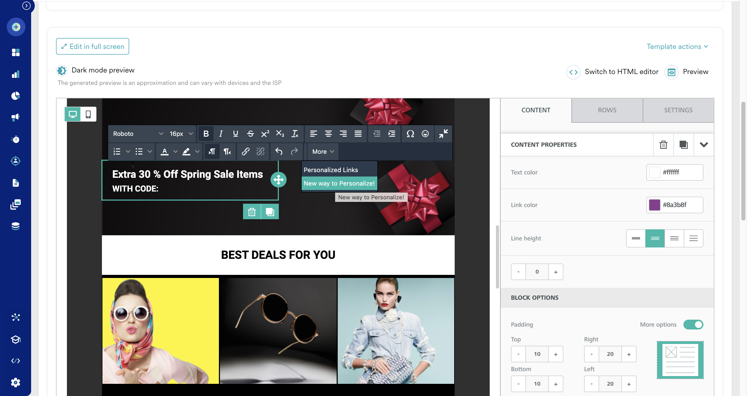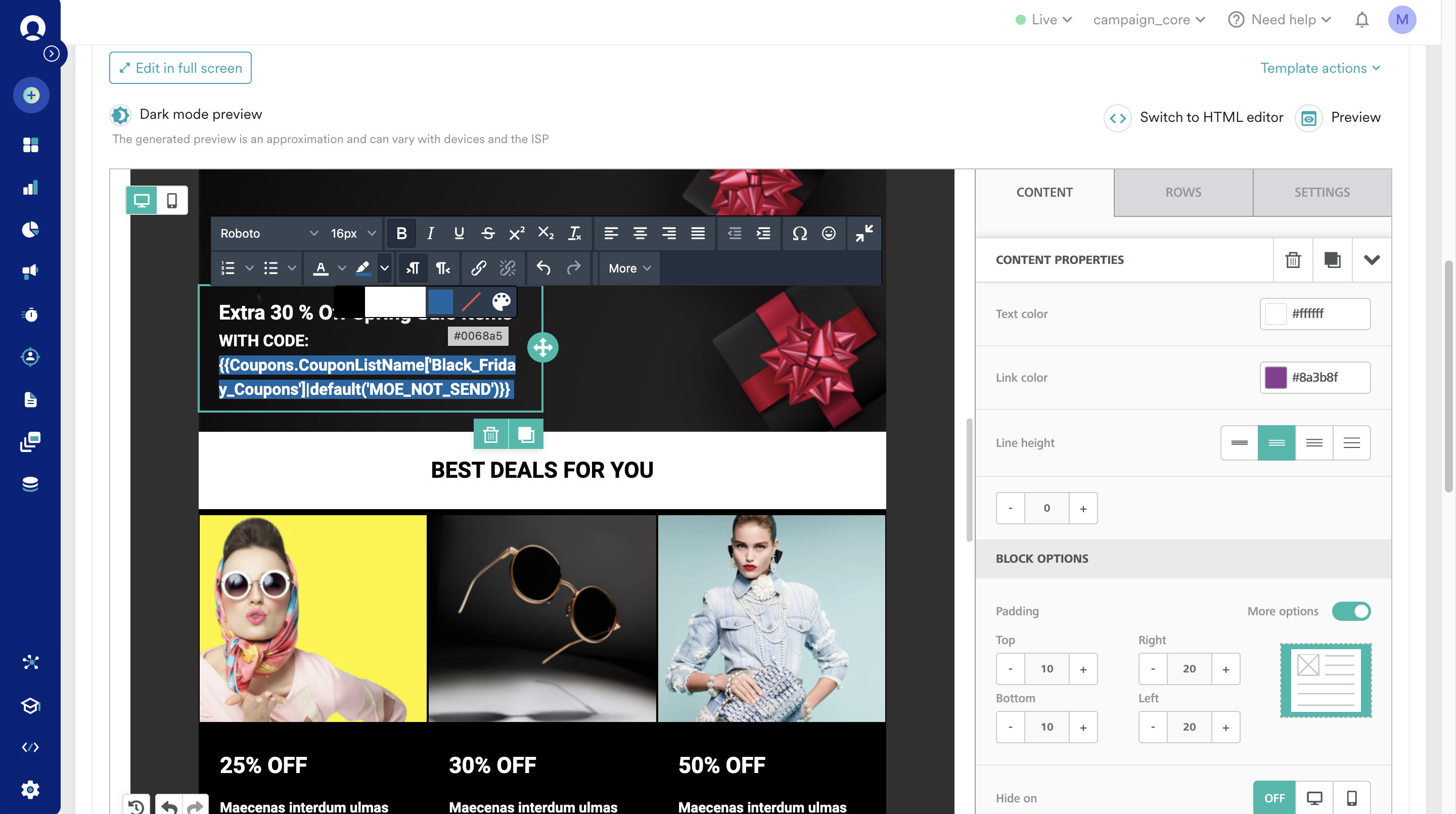 さらに、メール本文内でクーポンコードを強調表示するスタイルを追加できます。